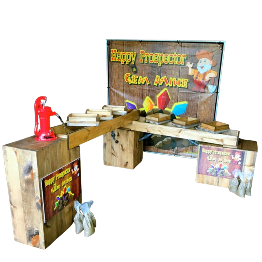 Our colorful and interactive mining sluice is fully portable and perfect for backyard birthdays, schoolyards, or local festivals.