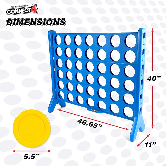 Experience the classic thrill of Connect 4 like never before with the Giant Connect 4 set! Perfect for those sunny days in North Texas, this game is a must-have for any tailgate party or family gathering. Brought to you by Hasbro, this officially licensed, all-weather game gives a refreshing twist to the strategy game you already love. 🏆