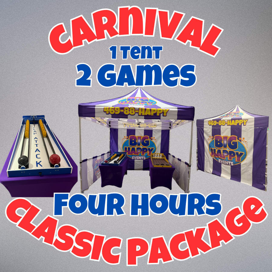 Step right up! The Big Happy Classic Carnival Package brings all the fun of the midway to your event with a colorful, interactive setup that’s perfect for guests of all ages. Whether you're hosting a school carnival, birthday party, corporate event, or community festival, this package delivers laughter, challenge, and nonstop entertainment.