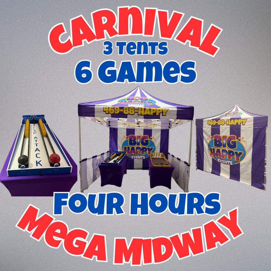 Step right up! The Big Happy Mega Midway Carnival Package brings all the fun of the midway to your event with a colorful, interactive setup that’s perfect for guests of all ages. Whether you're hosting a school carnival, birthday party, corporate event, or community festival, this package delivers laughter, challenge, and nonstop entertainment.